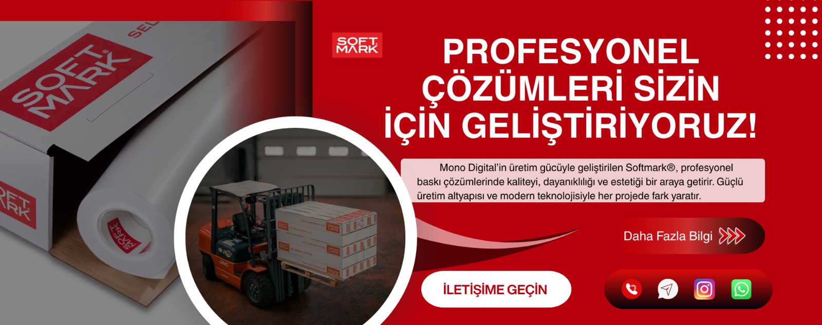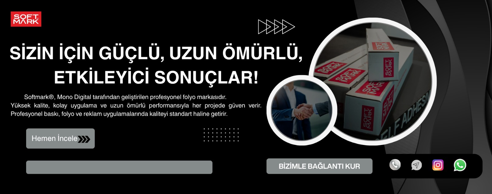 Firmamız 2015 yılında “Mono Digital Reklamcılık İç ve Dış Tic. Ltd. Şti.” olarak faaliyetlerine başladı. Hızlı servis ve kaliteli ürün tedariğini uygun fiyatlarla birleştiren “Mono Digital” kısa sürede Türkiye genelinde bilinen, önemli reklam malzemesi satıcısı pozisyonuna ulaştı. 2020 yılında başlattığımız AR-GE çalışmaları ile Kendinden Yapışkanlı PVC folyo üretimine odaklandık ve yapmış olduğumuz yatırım ile 2023 yılı başında seri üretime başladık. SoftMark® olarak reklam sektörü için başta dijital baskıya uygun kendinden yapışkanlı folyo üretmekteyiz. Her geçen gün ürün yelpazemizi bu yönde ...